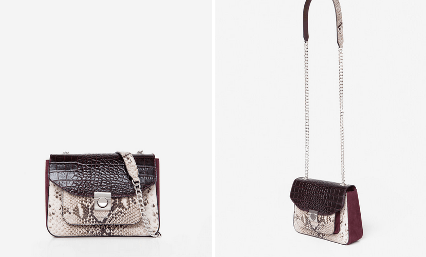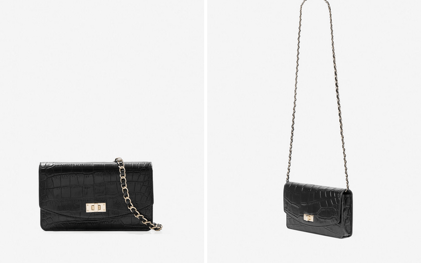 Los diseños de bandolera son perfectamente prácticos. Este modelo rectangular elaborado en piel vacuna de alta calidad, tiene grabado en piel de serpiente en la parte delantera y bonitos detalles de serraje en color negro. El asa bandolera con cadena regulable con detalle de piel en el hombro. Un diseño que enamora y que combina a la perfección con una prenda tan sencilla de fondo de armario como un pantalón vaquero. Este bolso cuesta 125 euros y está disponible en la tienda online.