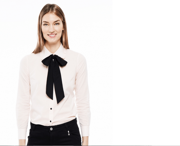Una camisa blanca también es una de las prendas del fondo de armario más utilizadas, una prenda básica que no pasa de moda y que puede sacarte de más de un apuro cuando no sabes qué ponerte exactamente en esos días en los que sientes que nada te queda bien. Una camisa blanca es perfecta para looks de oficina, un plan con amigas o cualquier rutina. Sin embargo, lo verdaderamente original es encontrar una blusa que tenga algún detalle personal y diferente. Pati Conde by Dándara te propone esa blusa con lazada negra que tiene una caída tan bonita.